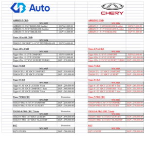 اسعار كافة طرازاتها من العلامة هيونداى وشيرى لشهر يونيه 2025