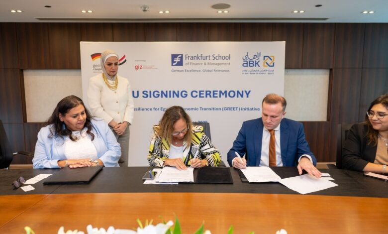 في إطار جهوده المستمرة في دعم التمويل المستدام وتعزيزاً لدوره في تحقيق أهداف التنمية المستدامة والتحول نحو الاقتصاد الأخضر ودعماً لرؤية مصر 2030، أعلن البنك الأهلي الكويتي – مصر عن توقيع مذكرة تفاهم مع جامعة فرانكفورت للعلوم المالية والإدارية Frankfurt School of Finance & Management، لتقديم دعم فني متخصص في تطوير المنتجات المالية الخضراء، وذلك ضمن مبادرة التحول نحو الاقتصاد الأخضر Green Resilience for Egypt’s Economic Transition (GREET)المدعومة من الوكالة الألمانية للتعاون الدولي.