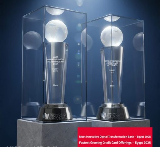 أعلن البنك المصري لتنمية الصادرات (EBank) عن فوزه بجائزتي “الأكثر ابتكارًا في التحول الرقمي في القطاع المصرفي بمصر 2025″ و”الأسرع نموًا في خدمات بطاقات الائتمان في مصر 2025” من مؤسسة International Finance العالمية، تقديرًا لريادته في تطوير حلول مصرفية رقمية مبتكرة وتحقيقه نموًا استثنائيًا في قطاع البطاقات الائتمانية.