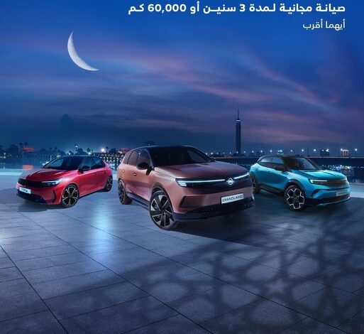 ويشمل العرض الرمضاني الحصري جميع موديلات OPEL 2026 المتاحة في مصر، وهي Corsa،Mokka، Grandland، مع إتاحة خدمات الصيانة المجانية وفق أعلى معايير الجودة والأمان.