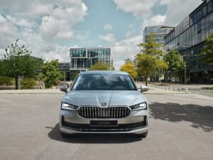 وتبرز “Škoda Superb 2025” بتصميم خارجي يعكس هوية سكودا المميزة، حيث تأتي الواجهة الأمامية بشبك عريض جريء ومصابيح حادة مزودة بتقنية “Crystallinium” ، بينما تمتد الخطوط الانسيابية للهيكل بسلاسة نحو الخلف لتمنح السيارة حضورًا قويًا وكفاءة ديناميكية هوائية عالية.