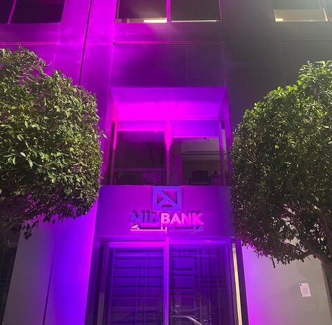 ميدبنك يشارك في شهر التوعية بسرطان الثدي بإضاءة مركزه الرئيسي باللون الوردي