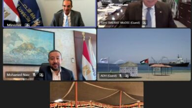 وزير الاتصالات و وزير الاقتصاد الأردنى يشهدان عملية إنزال الكابل البحرى عالى السعة “كورال بريدج” فى مدينة العقبة بالمملكة الأردنية الهاشمية
