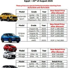 دايموند موتورز تعلن عن عروض خاصة على أسعار سيارات ميتسوبيشي تصل إلى 170 ألف جنيه على Eclipse Cross و100 ألف جنيه على Outlander Sport
