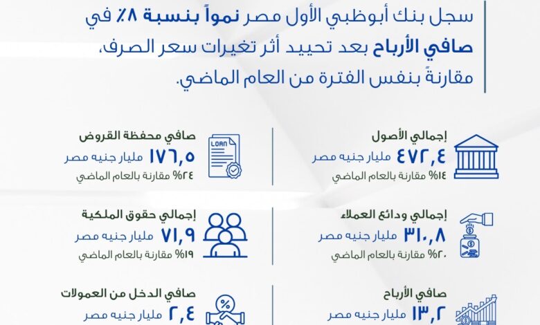 8 % نمو في صافي أرباح بنك ابوظبي الاول مصر